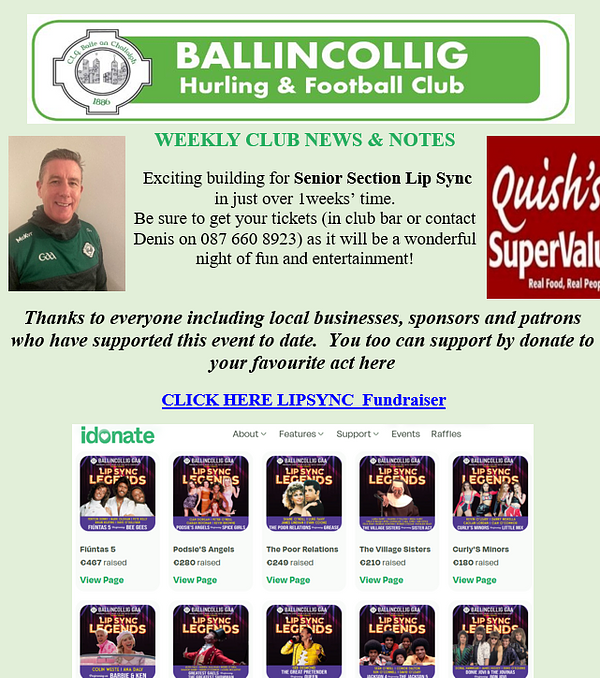 Ballincollig Club Newsletter for 45th week of 2025 is now at https://tinyurl.com/2025-Wk45 or on our website https://ballincolliggaa.clubzap.com/articles