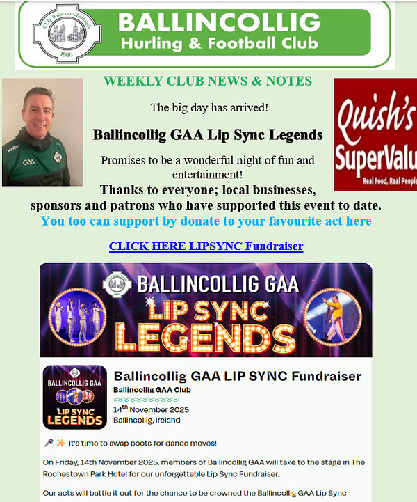 Ballincollig GAA, LGFA & Camogie © 2025