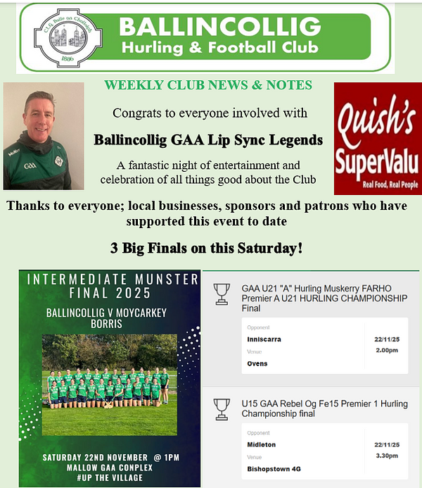 Ballincollig GAA, LGFA & Camogie © 2025