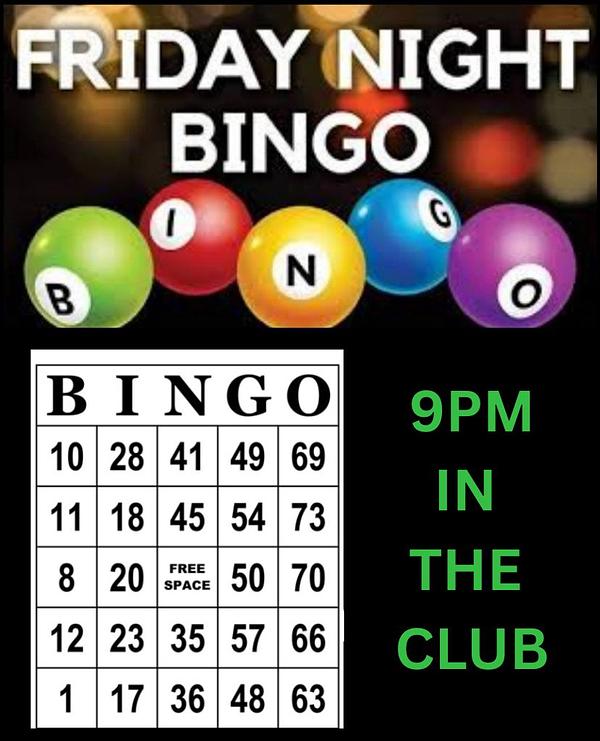 Join us in the Clubhouse tonight for Friday night Bingo. Plenty of fun for all to enjoy