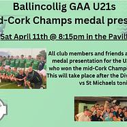Under 21 County Championship Final TODAYEaster Saturday - 4th April Time: 5pmVenue: Erins...