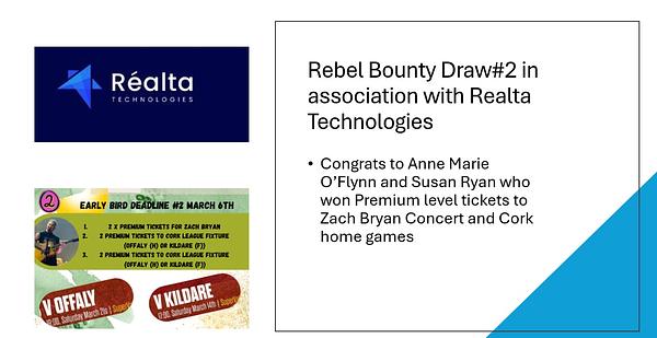 On Behalf of Ballincollig GAA, we would like to sincerely those of you for your support of the club by purchasing a Rebels Bounty ticket for the 2025 draw.