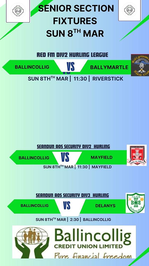 The Junior Bs hurlers are out tomorrow too against Mayfield & Delanys