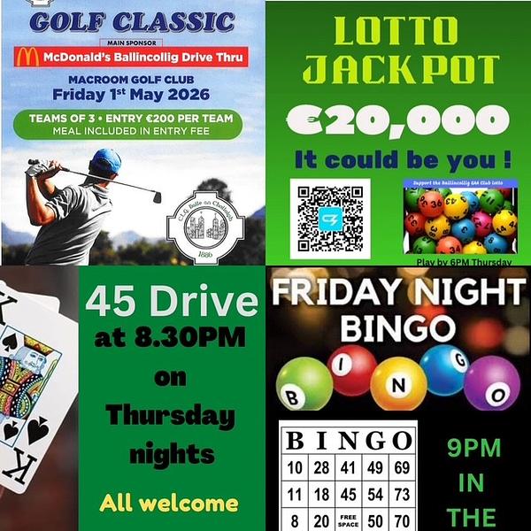 🟢⚪️ The club LOTTO is a massive €20,000, play by 6 PM on Thursday to be in the draw https://ballincolliggaa.clubzap.com/categories/lotto/products