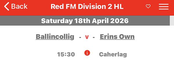 Game rescheduled to Saturday at 3:30pm and moved to Caherlag